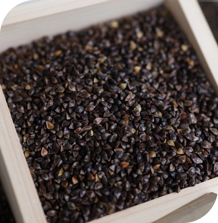 恒温工房と低温加工により、蕎麦に含まれるタンパク質をそのままに保ち、ミネラル成分やビタミンB1、B2などを豊富に含んでいます。また、日本の高度な技術で蕎麦の実の粗い殻を取り除くことで、純度の高い蕎麦を生産しています。