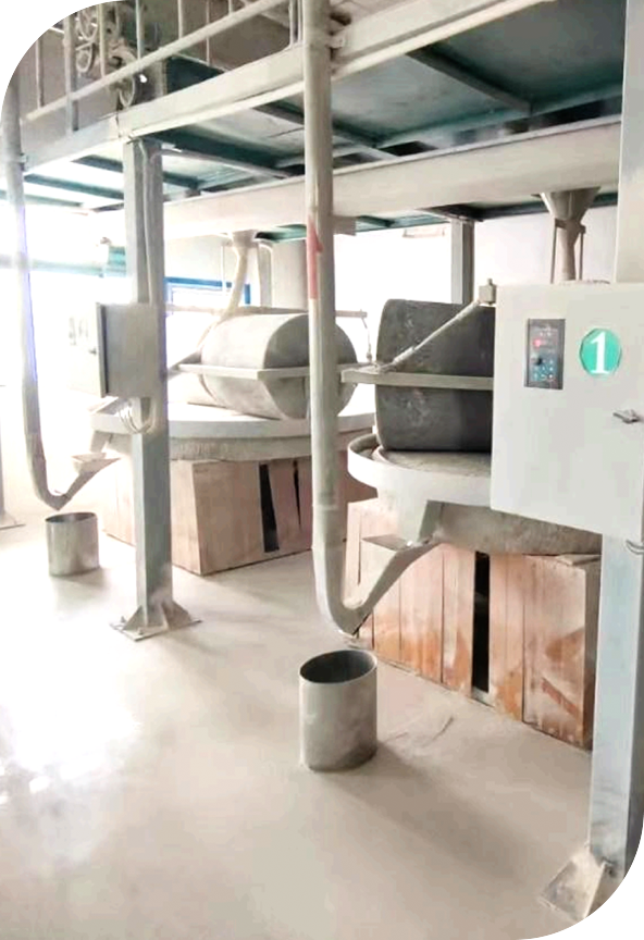 蕎麦の実は脱穀後そのまま製粉をすると、外側についていた小さな土などの不純物が粉に混ざり、味や質感が変わってしまいます。タッチョーでは、自社で蕎麦の実の磨きから剥き、適切な温度で保管ができる低温倉庫が完備された専用工場を所有しています。