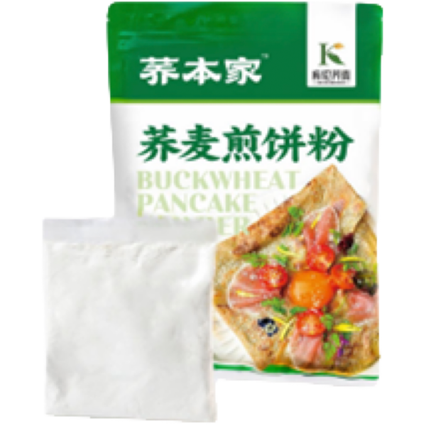 パンケーキミックス内モンゴルの庫倫旗産の純蕎麦粉。お菓子作りに適した、香り高くきめ細やかな質感が特徴。外がカリッと、中はフワッとした食感のパンケーキが仕上がります。